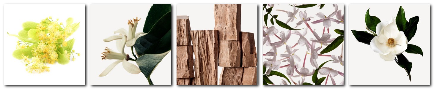 Нежный цветок липы скромно сияет, окружённый роскошным букетом из магнолии, жасмина и розы. Цветочный и изысканный парфюм, раскрывающийся как сладкие, тёплые объятия, оставляя место для древесных нот, амбры и мускуса.