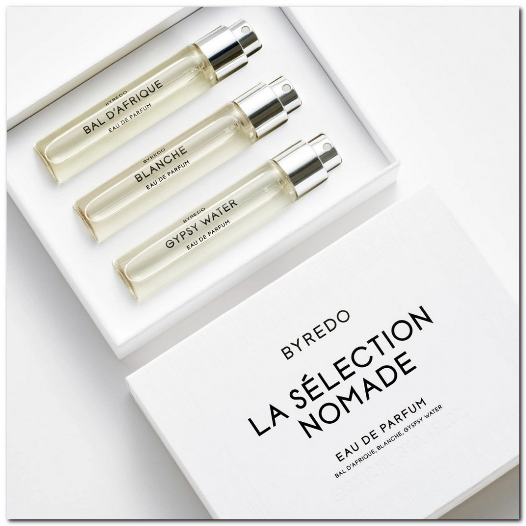 La Sélection Nomade представляет три культовых аромата — Bal d'Afrique, Blanche и Gypsy Water, каждый из которых заключён в удобный флакон объемом 12 мл, который можно использовать в дороге.