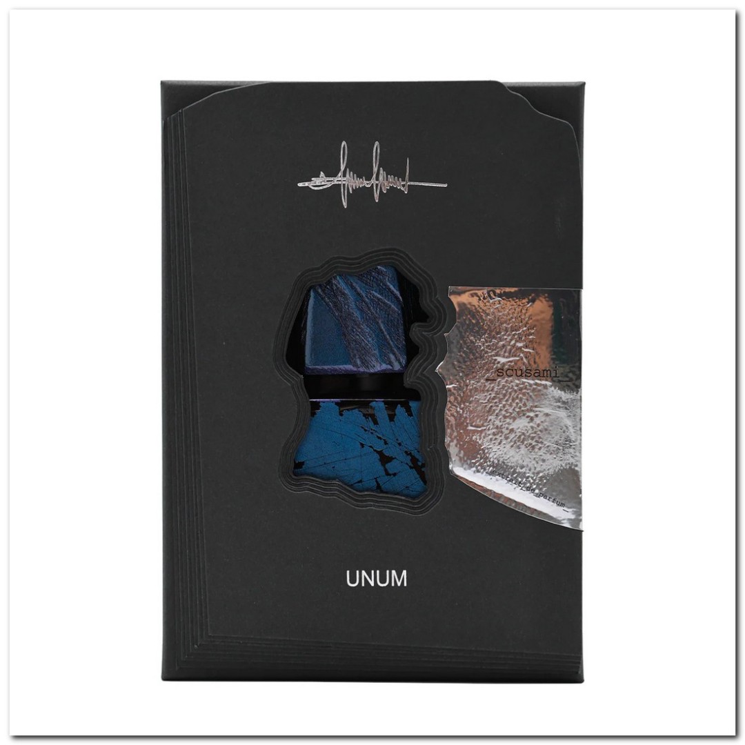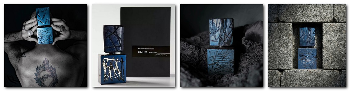 При внимательном рассмотрении даже флакон «Scusami» вызывает в памяти шрамы, путаницы и трещины, которые чувство вины оставляет в каждом из нас... И всё же радужная и переливающаяся поверхность упаковки предвосхищает всё возможности эволюции и возрождения, которые в двух словах, есть в нас самих. Так же, как цветение и созревание тех цветов и плодов, которые дарит этот аромат. Парфюм с невероятно сильным характером: характер тех, кто умеет извиняться.