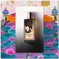 Индия, её необъятные просторы. Их можно ощутить, уловив пигмент, кожаный аккорд, который раскрывается вокруг сердца из киприола: это растение с его мощной, насыщенной, дымной нотой — друг индийских рек. Оно ассоциируется с романтическим успехом, его использовали в качестве ритуального аромата для женских сари и ухаживали с его помощью за мужскими сердцами. Это также напоминает о рикшах, небесах, цветах, подношениях, улыбках, огнях, блюдах, тысячелетиях, животных, дворцах, пейзажах. От Мумбаи до Кочи, от Калькутты до Бангалора — сколько бы вы ни смотрели, везде вас ждут новые впечатления. Путешествие вымощено бесконечностью, мудростью, деревом и цветами, его ритм отмечен эссенцией уда, ладаном и стираксом, а также абсолютами розы и жасмина. Всё в нём великолепно, как будто время и пространство заключили необычайный договор с помощью Ганеши, бога с головой слона. Экстракт стручков ванили, а затем эссенция пачули, с севера на юг, каждое видение обретает новую остроту, ощутимую плотность, более насыщенное движение. Оно манит нас снова и снова, чтобы мы могли насладиться его вечными сюрпризами, и мы никогда не перестаём наслаждаться его ароматом.