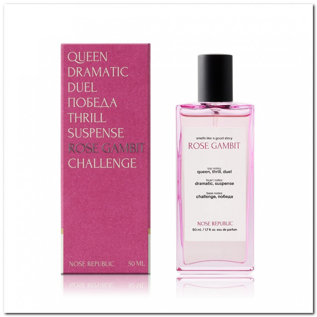 В шахматах «гамбитом» называют хладнокровное жертвоприношение — когда отдаёшь сопернику фигуру, чтобы получить стратегическое преимущество на доске. Чем мы жертвуем в Rose Gambit? Тривиальной миловидностью розы — разменной пешкой в нашей сложной партии цветов, табака и дерева. Что получаем в итоге? Азартные, как тиканье шахматных часов, духи с характером настоящего игрока.