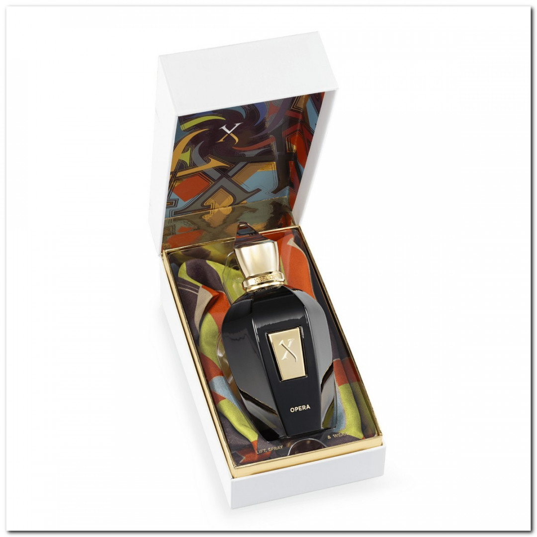 Opera представлена в уникальном шелковом шейном платке, разработанном Xerjoff и произведенном известными производителями шелка на озере Комо.